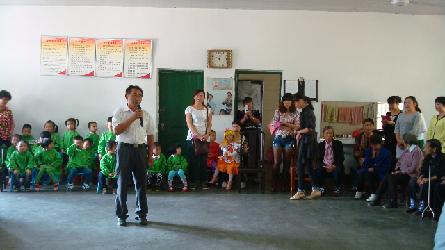 > 启明星幼儿园的师生及家长尊老、爱老、敬老活动现场